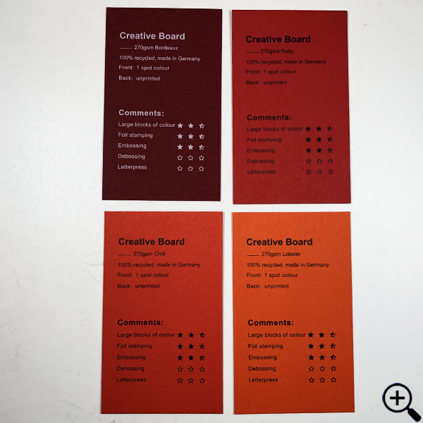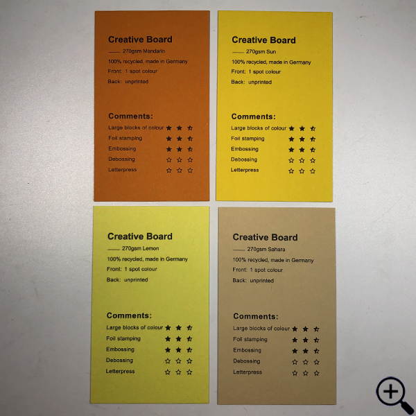 Stock: Creative Board 270gsm, 100% recycled, made in Germany
